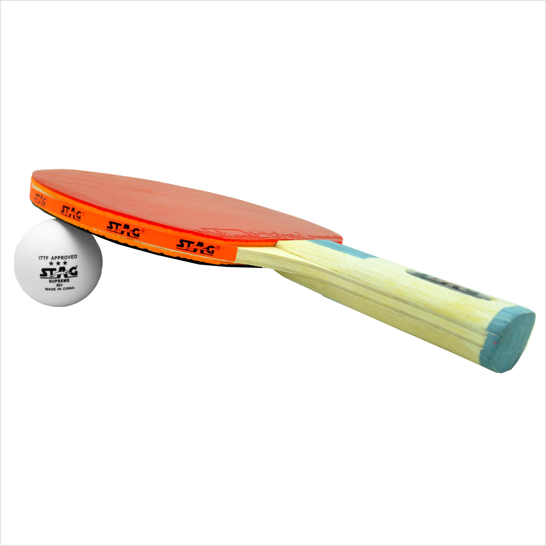The STAG ITTF Indoor Racquets include edge banding for full racket protection and a multi layer grip for supreme shock absorption.