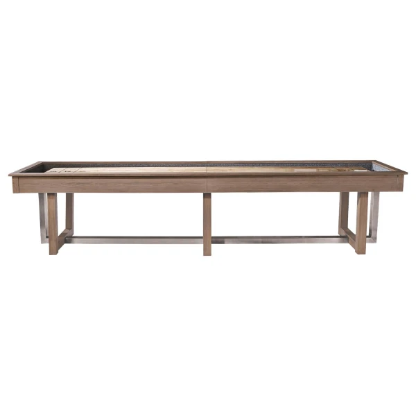The Abbey shuffleboard has a contemporary design combines hybrid materials for an elegant, transitional look. This shuffleboard features a maple playfield with climatic adjusters, brushed stainless steel elements, and an abacus scoring system. Available in Espresso or Antique Grey finish options.