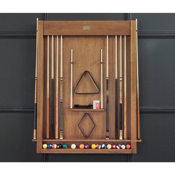 The Alta Wall mounted Cue Rack holes up to 12 cues along with everything you need for the perfect billiard game: racks, balls, brushes, chalk, and any other billiard accessories you prefer with room to spare. There is extra shaft storage for your favorite carbon fiber or kielwood shaft. Available in Brushed Walnut, Peppercorn, Charcoal, and Black Ash finishes.