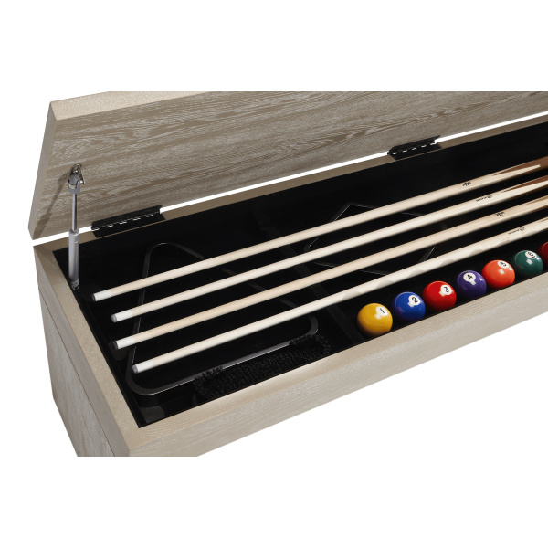 - Store essential game components, including 5 full-length assembled cues, balls, triangles, and chalk, ensuring everything is within easy reach during gameplay