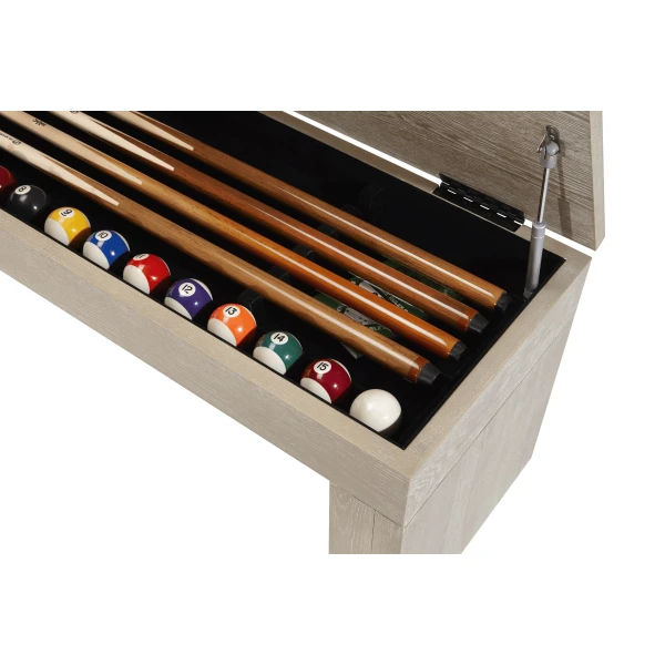 - Store essential game components, including 5 full-length assembled cues, balls, triangles, and chalk, ensuring everything is within easy reach during gameplay