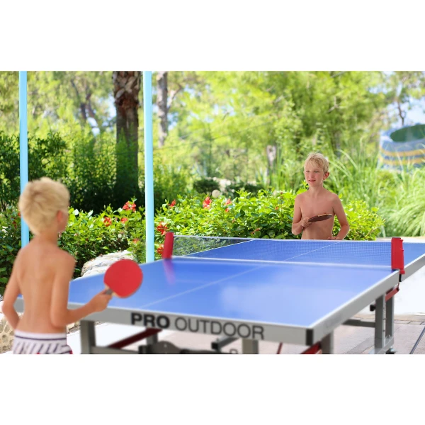 The Garlando Pro Outdoor Ping Pong Table is built for the great outdoors. Any environment Garlando can handle it all! Bring it out by the pool or into the back yard for years of fun in the sun. With it’s over sided frame and wheels it’s rugged enough to move across most surfaces safely and easily. The table separates into to two halves for easy transport. With the included paddle and ball storage tucked safely under the table you can be sure your equipment will be safe from the elements. Optional outdoor paddles and All Weather Cover is also available.