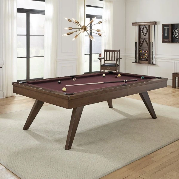 Crafted from solid Aspen wood and finished in our exquisite Whiskey finish, the Oslo pool table exudes timeless elegance. Its distinctive mid-century modern flair is embodied in the unique angled post legs, offering simplicity with a touch of distinction. The clean lines and elegant double inlaid rail sites add a sophisticated charm to the design, making the Oslo a statement piece in any space.
