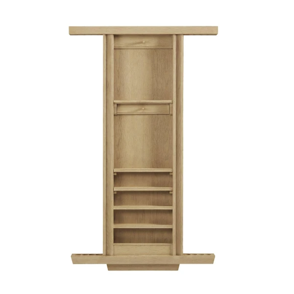 The Port Royal Cue Rack holds up to 8 cues while simultaneously displaying racks, balls, brushes, and chalk with plenty of room for additional billiard accessories.